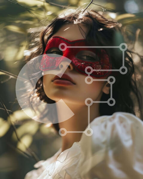 Intra Συλλεκτικό Ξύλινο Παζλ Plywood 4mm – Γυναίκα που φοράει κόκκινη μάσκα μεταμφίεσης και λευκά ρούχα Σε Ξύλινο Κουτί – Διαστάσεις Puzzle: 10×10 cm – 25 κομμάτια