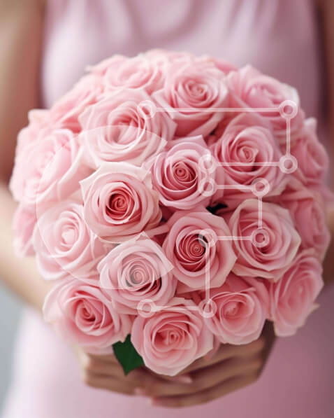 Intra Συλλεκτικό Ξύλινο Παζλ Plywood 4mm – Γυναίκα που κρατά ένα μεγάλο μπουκέτο με ροζ τριαντάφυλλα Σε Ξύλινο Κουτί – Διαστάσεις Puzzle: 10×10 cm – 25 κομμάτια