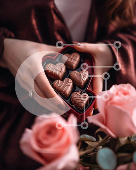 Intra Συλλεκτικό Ξύλινο Παζλ Plywood 4mm – Γυναίκα που κρατά κουτί με σοκολάτες σε σχήμα καρδιάς την ημέρα του Αγίου Βαλεντίνου Σε Ξύλινο Κουτί – Διαστάσεις Puzzle: 10×10 cm – 25 κομμάτια
