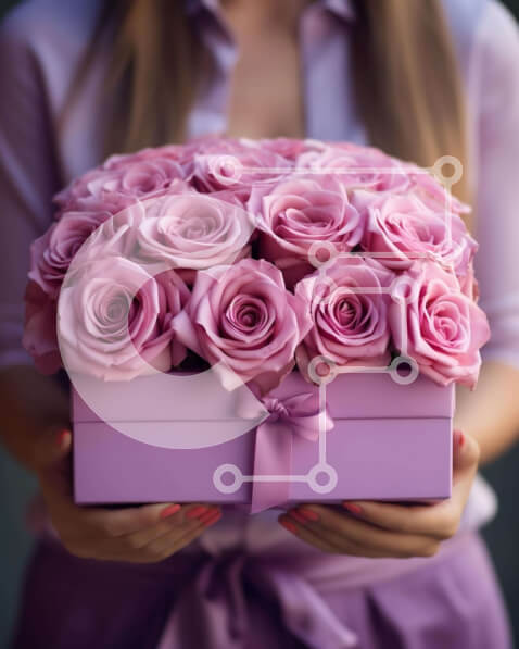 Intra Συλλεκτικό Ξύλινο Παζλ Plywood 4mm – Γυναίκα που κρατά ένα κουτί με ροζ τριαντάφυλλα Σε Ξύλινο Κουτί – Διαστάσεις Puzzle: 10×10 cm – 25 κομμάτια