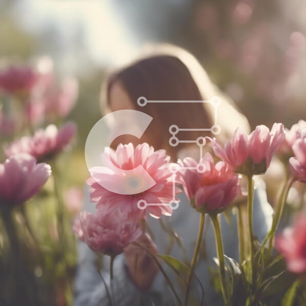 Intra Συλλεκτικό Ξύλινο Παζλ Plywood 4mm – Γυναίκα στο πεδίο ροζ λουλουδιών Σε Ξύλινο Κουτί – Διαστάσεις: 10×10 cm – 25 κομμάτια