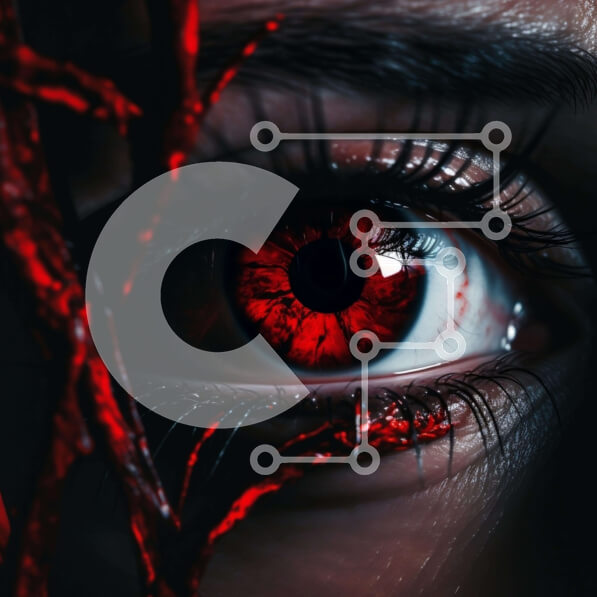 Intra Συλλεκτικό Ξύλινο Παζλ Plywood 4mm – Γυναικείο μάτι με κόκκινο αίμα και κλαδιά Σε Ξύλινο Κουτί – Διαστάσεις Puzzle: 10×10 cm – 25 κομμάτια