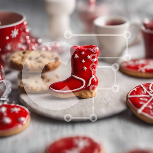 Intra Συλλεκτικό Ξύλινο Παζλ Plywood 4mm – Δίσκος με μπισκότα με κόκκινες μπότες χιονιού Σε Ξύλινο Κουτί – Διαστάσεις: 10×10 cm – 25 κομμάτια