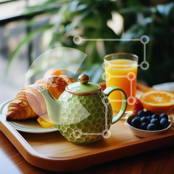 Intra Συλλεκτικό Ξύλινο Παζλ Plywood 4mm – Δίσκος πρωινού με τσαγιέρα και φρούτα Σε Ξύλινο Κουτί – Διαστάσεις: 10×10 cm – 25 κομμάτια