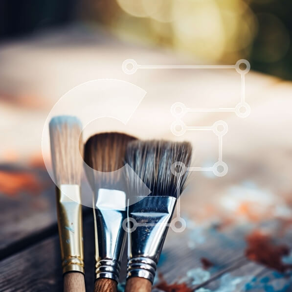 Intra Συλλεκτικό Ξύλινο Παζλ Plywood 4mm – Διάφορα πινέλα βαφής σε ξύλινη επιφάνεια Σε Ξύλινο Κουτί – Διαστάσεις Puzzle: 10×10 cm – 25 κομμάτια