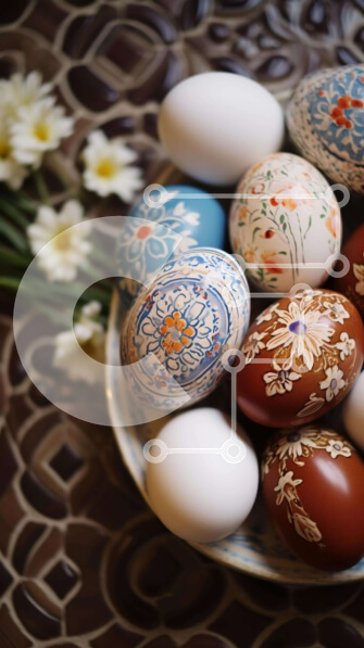 Intra Συλλεκτικό Ξύλινο Παζλ Plywood 4mm – Διακοσμημένα Πασχαλινά αυγά και λουλούδια σε ένα πιάτο Σε Ξύλινο Κουτί – Διαστάσεις: 10×10 cm – 25 κομμάτια