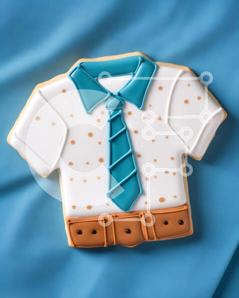 Intra Συλλεκτικό Ξύλινο Παζλ Plywood 4mm – Διακοσμημένο μπισκότο πουκάμισου και γραβάτας σε μπλε φόντο Σε Ξύλινο Κουτί – Διαστάσεις: 10×10 cm – 25 κομμάτια