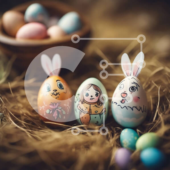 Intra Συλλεκτικό Ξύλινο Παζλ Plywood 4mm – Διακοσμημένα Πασχαλινά αυγά σε ένα σωρό από άχυρο Σε Ξύλινο Κουτί – Διαστάσεις: 10×10 cm – 25 κομμάτια