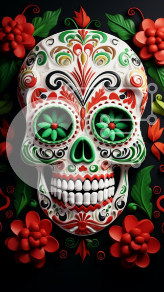 Intra Συλλεκτικό Ξύλινο Παζλ Plywood 4mm – Διακοσμητικό κρανίο ζάχαρης με λουλούδια Σε Ξύλινο Κουτί – Διαστάσεις Puzzle: 10×10 cm – 25 κομμάτια
