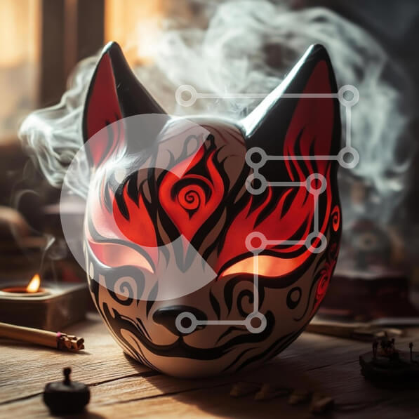 Intra Συλλεκτικό Ξύλινο Παζλ Plywood 4mm – Διακοσμητική μάσκα αλεπούς με κόκκινες φλόγες Σε Ξύλινο Κουτί – Διαστάσεις: 10×10 cm – 25 κομμάτια