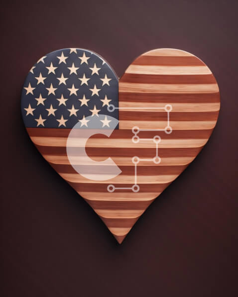 Intra Συλλεκτικό Ξύλινο Παζλ Plywood 4mm – Διακόσμηση σημαίας Ηνωμένων Πολιτειών σε σχήμα καρδιάς Σε Ξύλινο Κουτί – Διαστάσεις: 10×10 cm – 25 κομμάτια