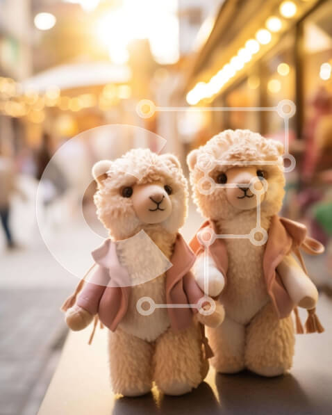 Intra Συλλεκτικό Ξύλινο Παζλ Plywood 4mm – Δύο αρκουδάκια με ροζ μπουφάν σε μια υπαίθρια αγορά Σε Ξύλινο Κουτί – Διαστάσεις Puzzle: 10×10 cm – 25 κομμάτια