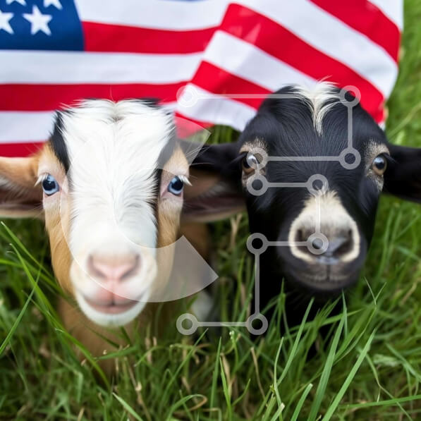 Intra Συλλεκτικό Ξύλινο Παζλ Plywood 4mm – Δύο ασπρόμαυρες κατσίκες με αμερικανική σημαία Σε Ξύλινο Κουτί – Διαστάσεις: 10×10 cm – 25 κομμάτια