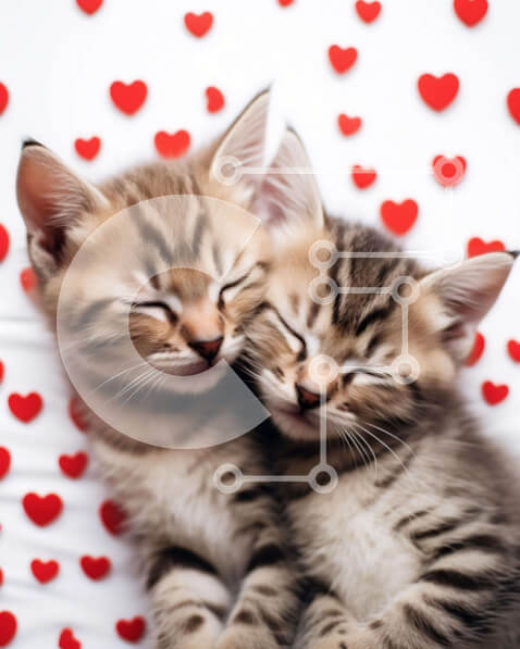 Intra Συλλεκτικό Ξύλινο Παζλ Plywood 4mm – Δύο γατάκια στριμώχνονται μαζί με φόντο κόκκινες καρδιές Σε Ξύλινο Κουτί – Διαστάσεις: 10×10 cm – 25 κομμάτια