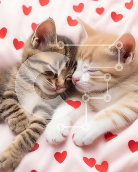 Intra Συλλεκτικό Ξύλινο Παζλ Plywood 4mm – Δύο γατάκια που κοιμούνται σε ένα κρεβάτι με κόκκινες καρδιές Σε Ξύλινο Κουτί – Διαστάσεις: 10×10 cm – 25 κομμάτια