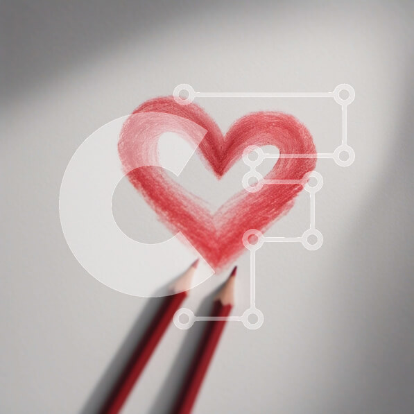 Intra Συλλεκτικό Ξύλινο Παζλ Plywood 4mm – Δύο κόκκινα μολύβια που δημιουργούν ένα σχήμα καρδιάς σε λευκή επιφάνεια Σε Ξύλινο Κουτί – Διαστάσεις: 10×10 cm – 25 κομμάτια