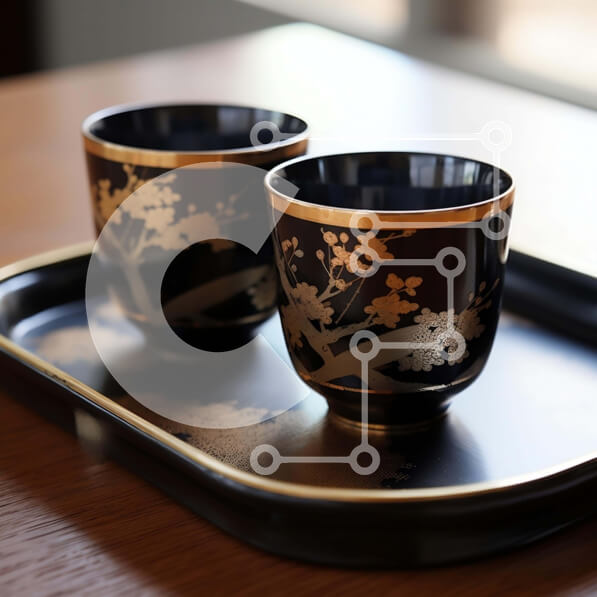 Intra Συλλεκτικό Ξύλινο Παζλ Plywood 4mm – Δύο μαύρα κύπελλα στο δίσκο με χρυσές πινελιές Σε Ξύλινο Κουτί – Διαστάσεις Puzzle: 10×10 cm – 25 κομμάτια