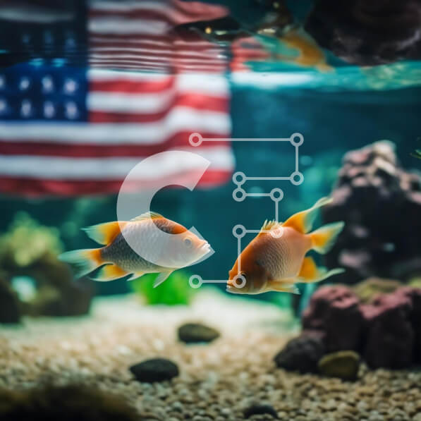 Intra Συλλεκτικό Ξύλινο Παζλ Plywood 4mm – Δύο υγιή χρυσόψαρα στο ενυδρείο αμερικανικής σημαίας Σε Ξύλινο Κουτί – Διαστάσεις: 10×10 cm – 25 κομμάτια