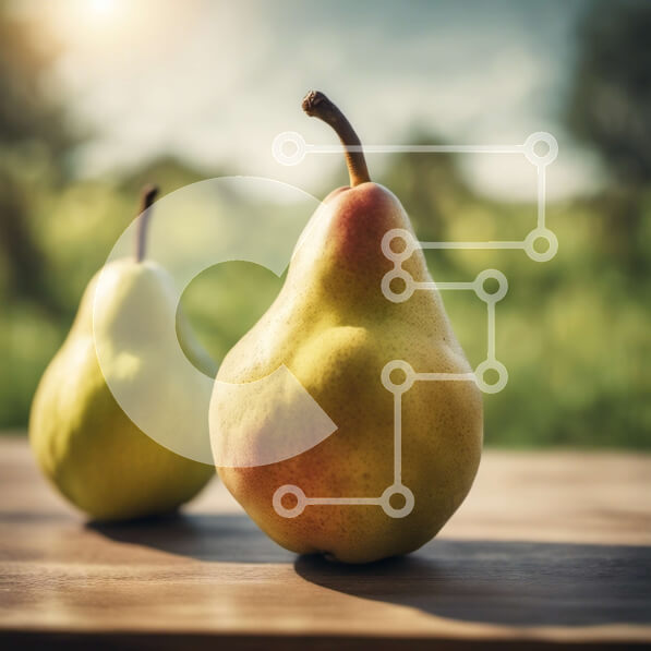 Intra Συλλεκτικό Ξύλινο Παζλ Plywood 4mm – Δύο ώριμα αχλάδια σε ένα ξύλινο τραπέζι με πράσινο φόντο Σε Ξύλινο Κουτί – Διαστάσεις: 10×10 cm – 25 κομμάτια