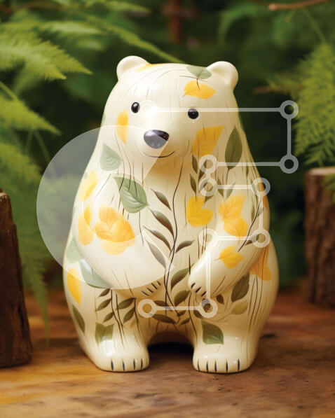 Intra Συλλεκτικό Ξύλινο Παζλ Plywood 4mm – Ειδώλιο λευκής αρκούδας με κίτρινα λουλούδια και πράσινα φύλλα σε ξύλινο τραπέζι Σε Ξύλινο Κουτί – Διαστάσεις: 10×10 cm – 25 κομμάτια