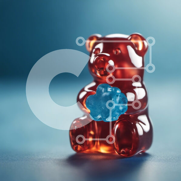 Intra Συλλεκτικό Ξύλινο Παζλ Plywood 4mm – Ειδώλιο μπλε Gummy Bear με πορτοκαλί τσίχλα σε μπλε φόντο Σε Ξύλινο Κουτί – Διαστάσεις: 10×10 cm – 25 κομμάτια
