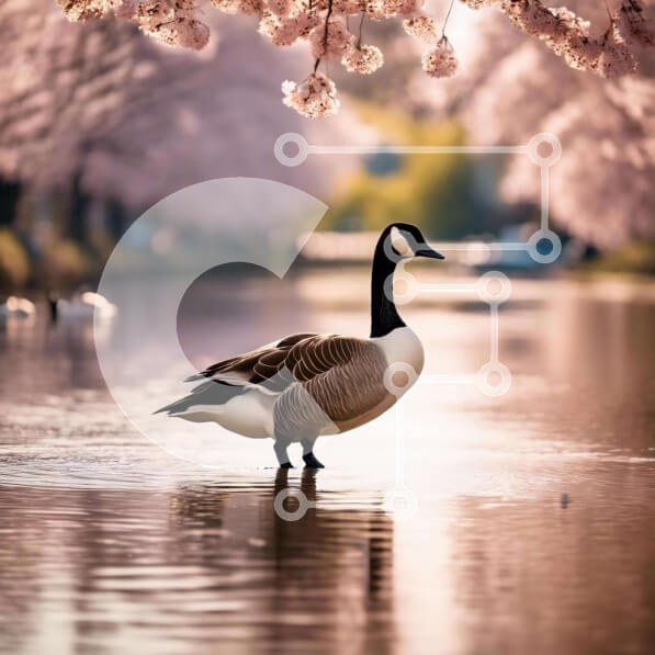 Intra Συλλεκτικό Ξύλινο Παζλ Plywood 4mm – Ειρηνική χήνα κοντά σε ανθισμένες κερασιές και νερό Σε Ξύλινο Κουτί – Διαστάσεις: 10×10 cm – 25 κομμάτια
