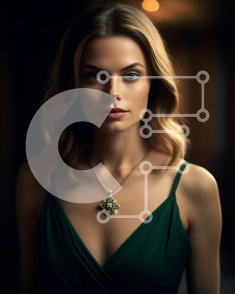 Intra Συλλεκτικό Ξύλινο Παζλ Plywood 4mm – Εκλεπτυσμένο πορτρέτο μιας νεαρής γυναίκας με πράσινο φόρεμα και χρυσό κολιέ Σε Ξύλινο Κουτί – Διαστάσεις Puzzle: 10×10 cm – 25 κομμάτια