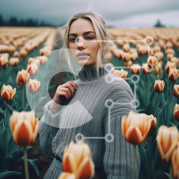 Intra Συλλεκτικό Ξύλινο Παζλ Plywood 4mm – Εκπληκτική φωτογραφία μιας γυναίκας ανάμεσα στο χωράφι με τουλίπα που φοράει γκρι πουλόβερ Σε Ξύλινο Κουτί – Διαστάσεις: 10×10 cm – 25 κομμάτια