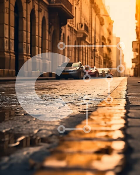 Intra Συλλεκτικό Ξύλινο Παζλ Plywood 4mm – Εκπληκτική σκηνή του City Street στο ηλιοβασίλεμα με κτίρια και παρκαρισμένα αυτοκίνητα Σε Ξύλινο Κουτί – Διαστάσεις Puzzle: 10×10 cm – 25 κομμάτια