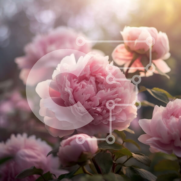 Intra Συλλεκτικό Ξύλινο Παζλ Plywood 4mm – Εκπληκτική εικόνα με ροζ παιώνιες σε έναν κήπο στο ηλιοβασίλεμα Σε Ξύλινο Κουτί – Διαστάσεις: 10×10 cm – 25 κομμάτια