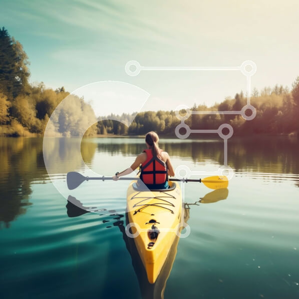 Intra Συλλεκτικό Ξύλινο Παζλ Plywood 4mm – Εκπληκτική εικόνα μιας γυναίκας που κάνει καγιάκ σε μια ήρεμη λίμνη Σε Ξύλινο Κουτί – Διαστάσεις Puzzle: 10×10 cm – 25 κομμάτια