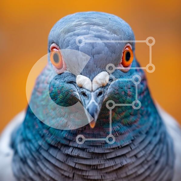Intra Συλλεκτικό Ξύλινο Παζλ Plywood 4mm – Εκπληκτική κοντινή πλάνο του προσώπου ενός περιστεριού με κόκκινα μάτια Σε Ξύλινο Κουτί – Διαστάσεις: 10×10 cm – 25 κομμάτια