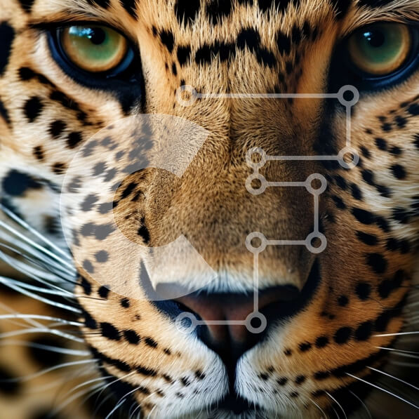 Intra Συλλεκτικό Ξύλινο Παζλ Plywood 4mm – Εκπληκτική κοντινή πλάνο του προσώπου μιας λεοπάρδαλης με μακριά μουστάκια Σε Ξύλινο Κουτί – Διαστάσεις: 10×10 cm – 25 κομμάτια