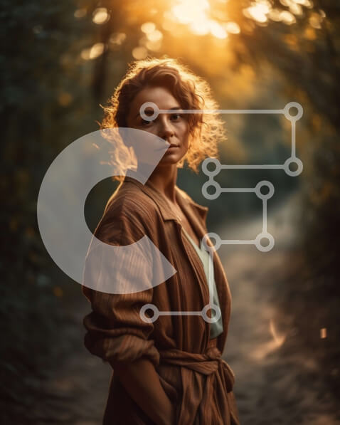 Intra Συλλεκτικό Ξύλινο Παζλ Plywood 4mm – Εκπληκτική εικόνα γυναίκας με καφέ παλτό στο ηλιοβασίλεμα στο δάσος Σε Ξύλινο Κουτί – Διαστάσεις: 10×10 cm – 25 κομμάτια
