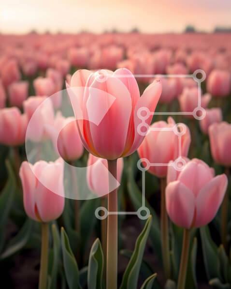 Intra Συλλεκτικό Ξύλινο Παζλ Plywood 4mm – Εκπληκτική εικόνα του ροζ πεδίου της τουλίπας στο ηλιοβασίλεμα Σε Ξύλινο Κουτί – Διαστάσεις: 10×10 cm – 25 κομμάτια