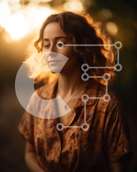 Intra Συλλεκτικό Ξύλινο Παζλ Plywood 4mm – Εκπληκτική εικόνα της γυναίκας με ένα λουλουδάτο πουκάμισο σε ένα δάσος στο ηλιοβασίλεμα Σε Ξύλινο Κουτί – Διαστάσεις: 10×10 cm – 25 κομμάτια