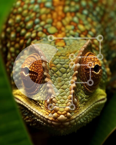 Intra Συλλεκτικό Ξύλινο Παζλ Plywood 4mm – Εκπληκτική εικόνα του προσώπου και της γλώσσας ενός χαμαιλέοντα Σε Ξύλινο Κουτί – Διαστάσεις: 10×10 cm – 25 κομμάτια