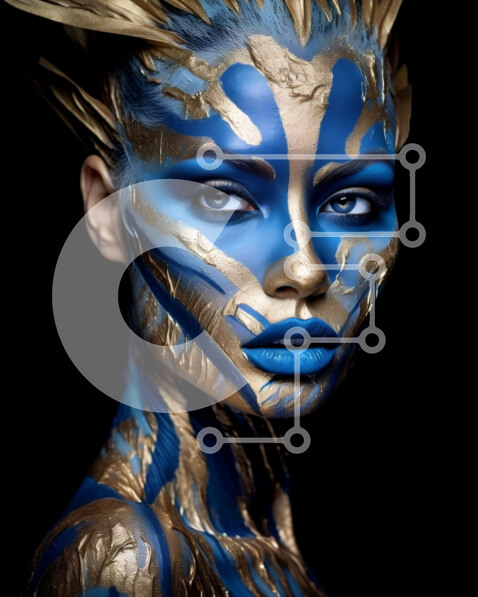 Intra Συλλεκτικό Ξύλινο Παζλ Plywood 4mm – Εκπληκτική γυναίκα με μπλε και χρυσό χρώμα σώματος Σε Ξύλινο Κουτί – Διαστάσεις Puzzle: 10×10 cm – 25 κομμάτια