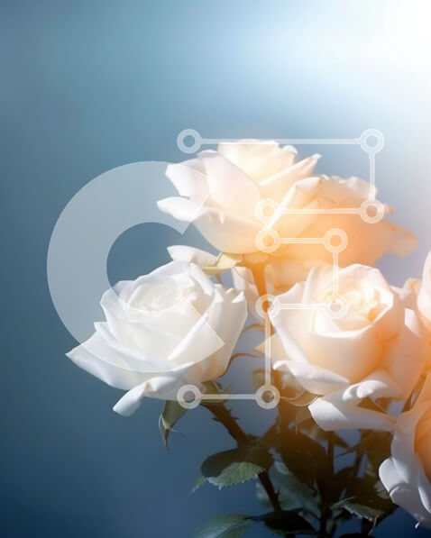 Intra Συλλεκτικό Ξύλινο Παζλ Plywood 4mm – Εκπληκτική εικόνα λευκών τριαντάφυλλων σε ζωντανό μπλε φόντο Σε Ξύλινο Κουτί – Διαστάσεις Puzzle: 10×10 cm – 25 κομμάτια