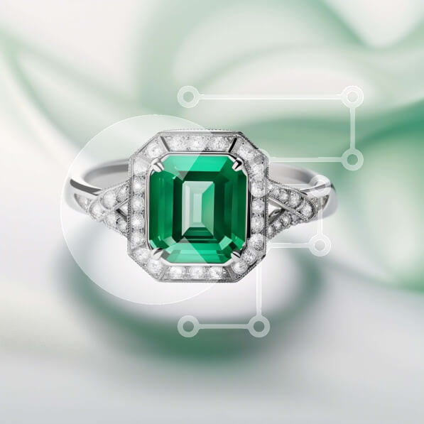 Intra Συλλεκτικό Ξύλινο Παζλ Plywood 4mm – Εκπληκτικό δαχτυλίδι από σμαράγδι και διαμάντια σε καθαρό λευκό φόντο Σε Ξύλινο Κουτί – Διαστάσεις: 10×10 cm – 25 κομμάτια