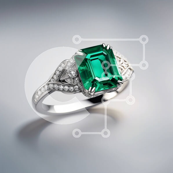 Intra Συλλεκτικό Ξύλινο Παζλ Plywood 4mm – Εκπληκτικό δαχτυλίδι από σμαράγδι και διαμάντια σε διακριτικό γκρι φόντο Σε Ξύλινο Κουτί – Διαστάσεις: 10×10 cm – 25 κομμάτια