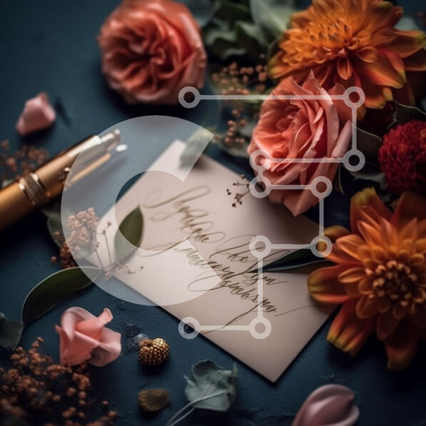 Intra Συλλεκτικό Ξύλινο Παζλ Plywood 4mm – Εκπληκτική floral σύνθεση με στυλό καλλιγραφίας σε σκούρο μπλε φόντο Σε Ξύλινο Κουτί – Διαστάσεις: 10×10 cm – 25 κομμάτια