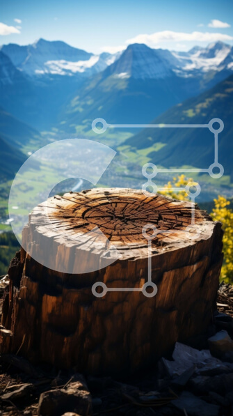 Intra Συλλεκτικό Ξύλινο Παζλ Plywood 4mm – Εκπληκτική θέα στο κούτσουρο δέντρου και στα χιονισμένα βουνά Σε Ξύλινο Κουτί – Διαστάσεις: 10×10 cm – 25 κομμάτια