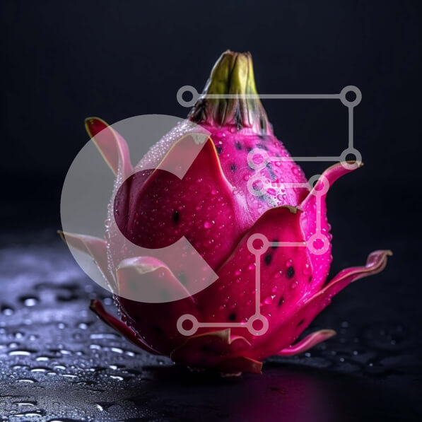 Intra Συλλεκτικό Ξύλινο Παζλ Plywood 4mm – Εκπληκτική φωτογραφία του Pink Dragon Fruit με σταγονίδια νερού σε μια μαύρη επιφάνεια Σε Ξύλινο Κουτί – Διαστάσεις: 10×10 cm – 25 κομμάτια