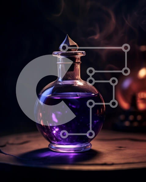 Intra Συλλεκτικό Ξύλινο Παζλ Plywood 4mm – Εκπληκτική εικόνα μωβ υγρού σε γυάλινο μπουκάλι σε ξύλινο τραπέζι Σε Ξύλινο Κουτί – Διαστάσεις: 10×10 cm – 25 κομμάτια