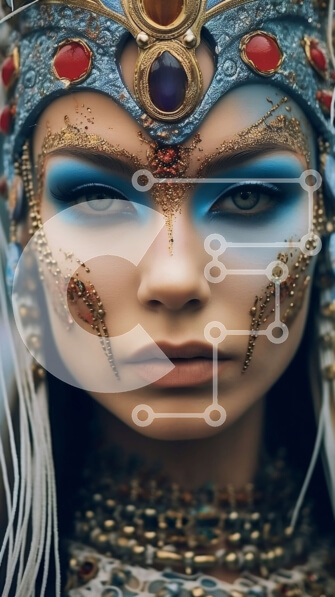 Intra Συλλεκτικό Ξύλινο Παζλ Plywood 4mm – Εκπληκτική εικόνα γυναίκας που φορά περίπλοκο μπλε και χρυσό κάλυμμα κεφαλής και μακιγιάζ Σε Ξύλινο Κουτί – Διαστάσεις Puzzle: 10×10 cm – 25 κομμάτια