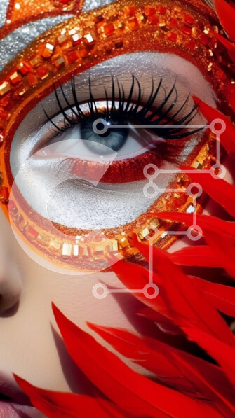 Intra Συλλεκτικό Ξύλινο Παζλ Plywood 4mm – Εκπληκτική εικόνα μιας γυναίκας με μια κόκκινη και χρυσή βενετσιάνικη μάσκα με φτερά Σε Ξύλινο Κουτί – Διαστάσεις Puzzle: 10×10 cm – 25 κομμάτια
