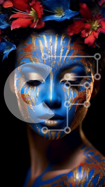 Intra Συλλεκτικό Ξύλινο Παζλ Plywood 4mm – Εκπληκτική εικόνα μιας γυναίκας με μπλε και χρυσό χρώμα σώματος με φλοράλ κόμμωση Σε Ξύλινο Κουτί – Διαστάσεις Puzzle: 10×10 cm – 25 κομμάτια
