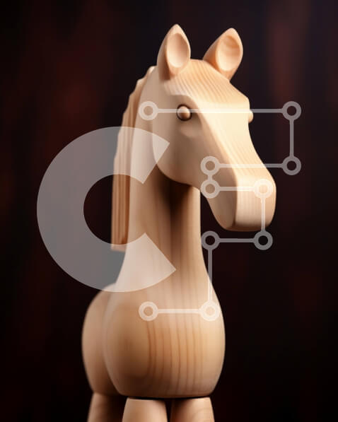 Intra Συλλεκτικό Ξύλινο Παζλ Plywood 4mm – Εκπληκτικό ξύλινο άγαλμα αλόγων σε μυστηριώδες σκοτεινό φόντο Σε Ξύλινο Κουτί – Διαστάσεις: 10×10 cm – 25 κομμάτια