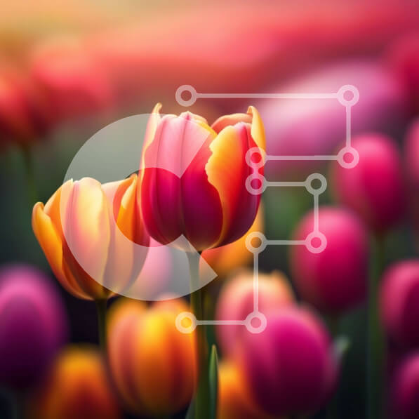 Intra Συλλεκτικό Ξύλινο Παζλ Plywood 4mm – Εκπληκτική εικόνα από πολύχρωμες τουλίπες σε πλήρη άνθιση στο ηλιοβασίλεμα Σε Ξύλινο Κουτί – Διαστάσεις: 10×10 cm – 25 κομμάτια